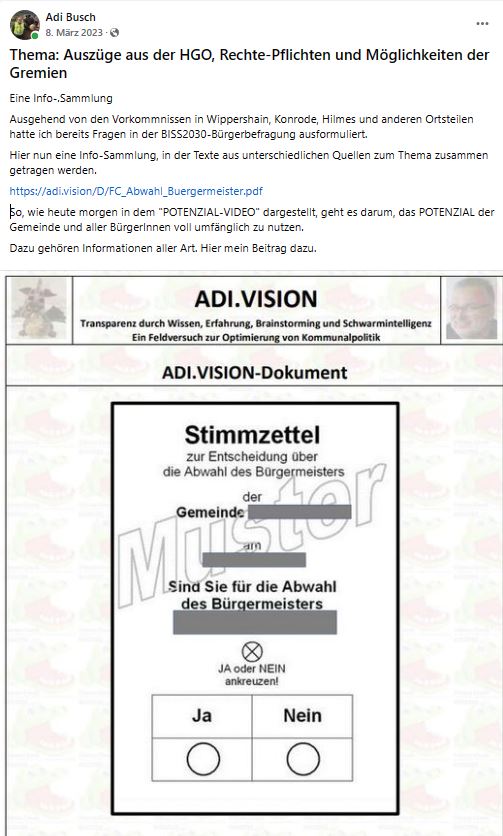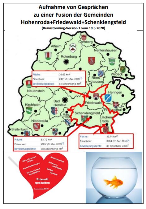 Zum Austesten des adi.vision-Ansatzes "Projektbeschreibung/Goldfisch-Antrag" hatte ich einmal MUSTERHAFT eine erste Version eines Arbeitspapiers zwischen den Gemeinden erstellt. Wurde natürlich ignoriert.;-) Siehe https://adi.vision/D/L2030-360Grad_Antrag_Gemeinde_Fusion_2020_06_06.pdf | |