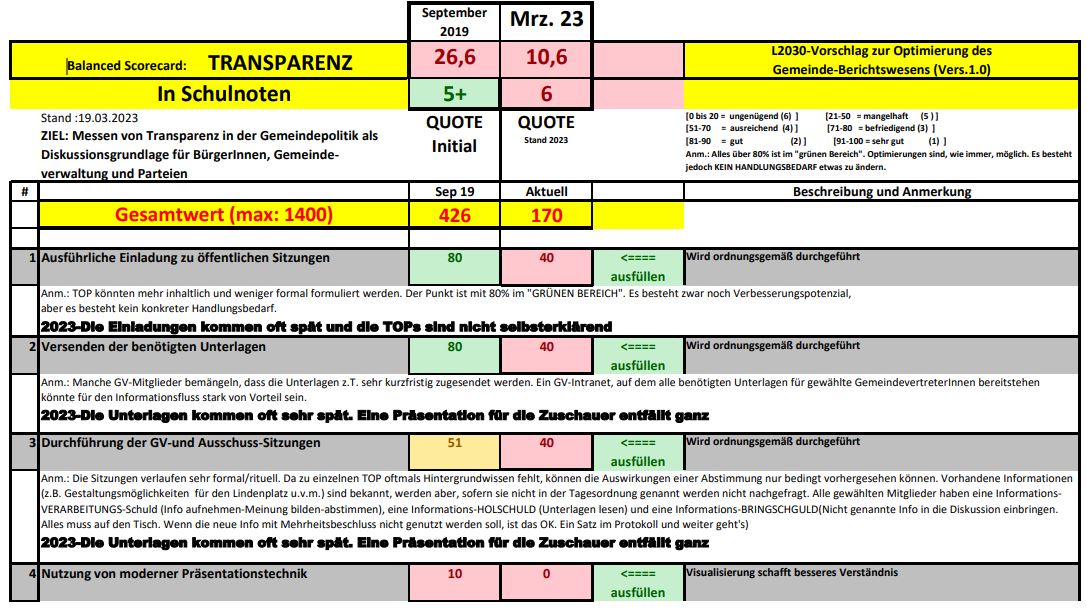 19.03.2023 | BISS2030 | Adi Busch | Erstellung einer objektiven MESS-EINRICHTUNG für die QUALITÄT der Arbeit der Kommune Schenklengsfeld | Feststellen von QUALITATIVEN UNTERSCHIEDEN in der Arbeit der Kommune zwischen 2020 und 2023 | |