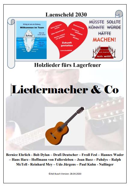 InL2030_Holzlieder-Romantik_2020_02_19-22.pdf werden, am Beispiel von 10 Liedern, Techniken gezeigt, mit denen man sich selbst das Gitarrespielen beibringen kann. Die Lieder bauen aufeinander auf und decken bereits unterschiedliche Musikstile und Techniken ab. Laenscheld2030 – Lieder auf deutsch ©AdiBusch – Laenscheld2030 - 4 - Version : 28.04.2020 Da die Anleitung ohne jegliche Noten auskommt, muss natürlich irgendein Weg gefunden werden, dass Melodie und Text vermittelt werden. Dazu hilft Das INTERNET als Lehrer