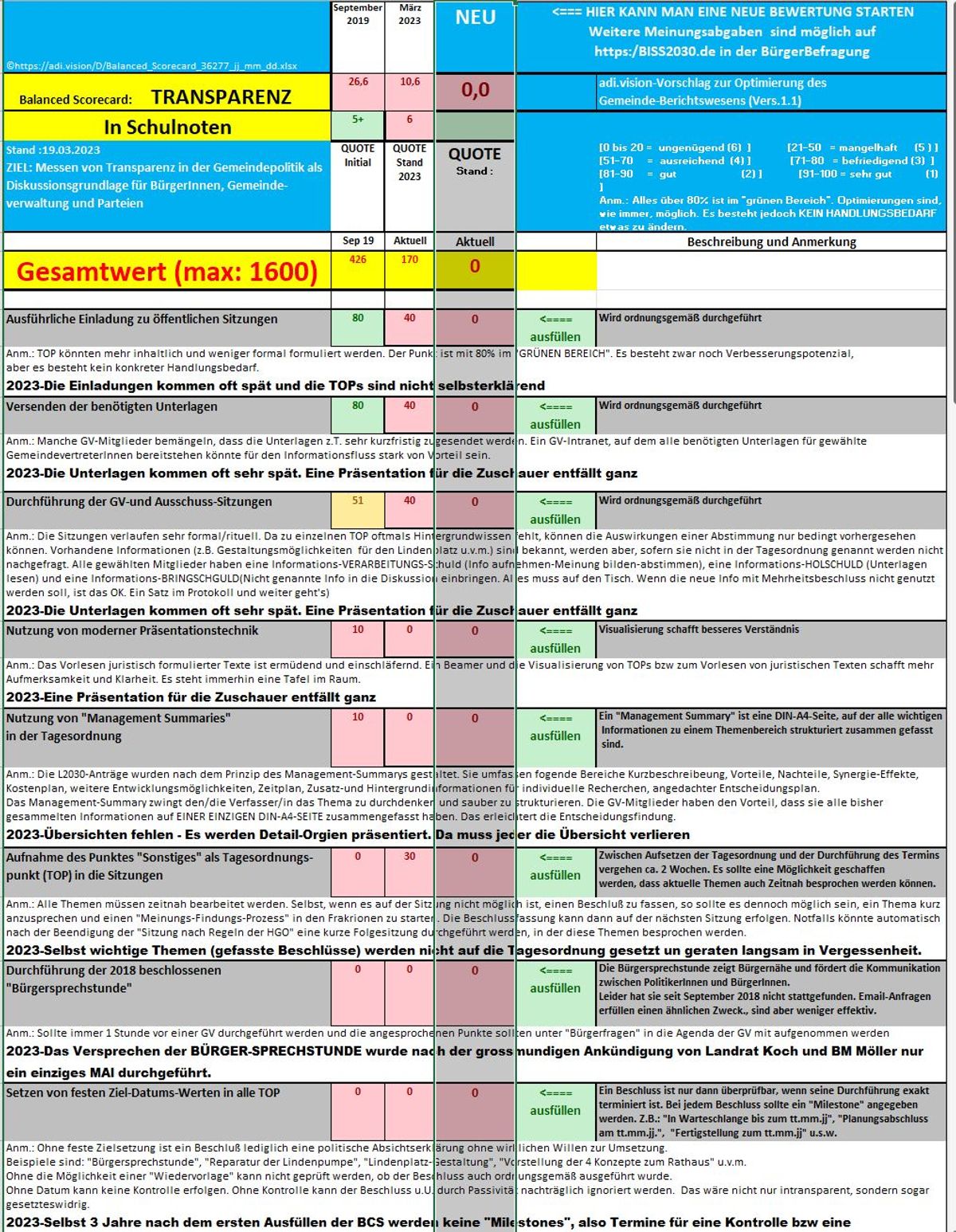 MANAGER - BEWERTUNGS - BOGEN Die WählerInnen haben, je nach Bereich, nur alle 4, 5, oder 6 Jahre die Gelegenheit, "per Kreuzchen" ihre Wahl kund zu tun. Bei der Bürgermeister-Wahl 2023 in "36277 Schenklengsfeld" haben die WählerInnen ein eindeutiges Ergebnis erzielt. Übertragen auf die Kriterien des "Manager-Bewertungs-Bogens" sähe das Ergebnis so aus, wie HI https://adi.vision/D/Auswahl%20Buergermeister%2070_30.JPG ER beschrieben.