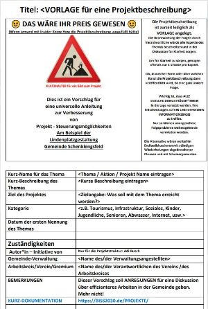 Die meisten Informationen stehen in dieser Vorlage für eine PROJEKT-BESCHREIBUNG: